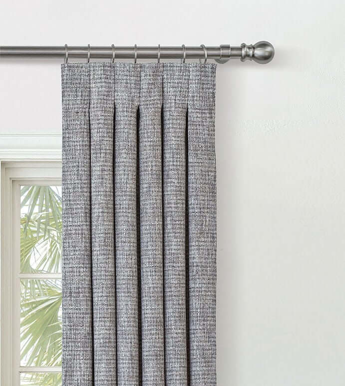 Each new introduction to our drapery program offers custom size and style options. In addition to classic pinch pleat and rod pocket headings, we have introduced a modern 2-finger pinch pleat into our lineup of headers.