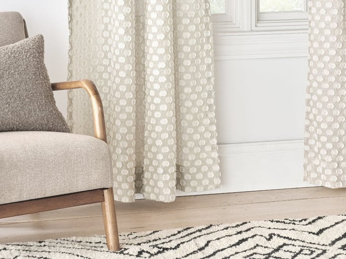 Soft-to-the-touch and wrinkle-resistant, our default drapery lining filters light, provides extra fullness, and helps extend the life of your curtains. Standard lining comes in two color options, Eris White and Eris Ivory. Available in both single and double widths, this standard lining is compatible with most panel sizes, and is stable in humidity to accommodate any climate. As the best-selling drapery lining in Europe, this multi-functional textile is a tried-and-true classic!