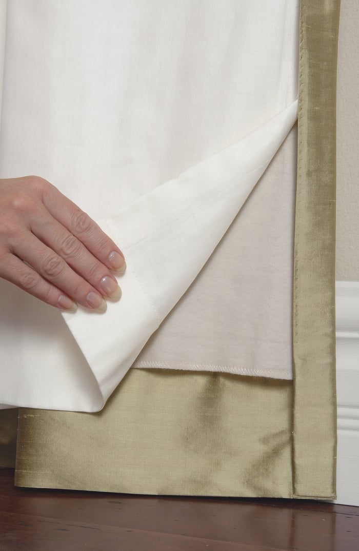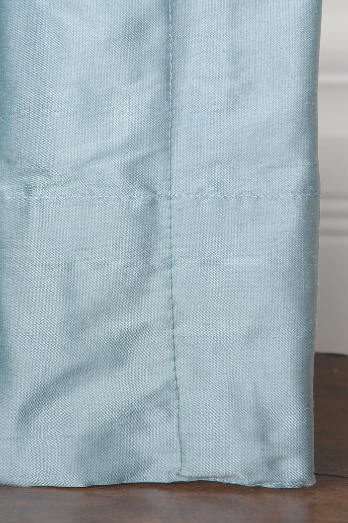 A 4” double rolled hem helps our draperies maintain a cleaner, crisper hanging bottom edge. Having a double rolled hem also means our hems actually have triple thickness of fabric, adding weight and helping each panel maintain its shape and fullness—even with thin or sheer fabrics.