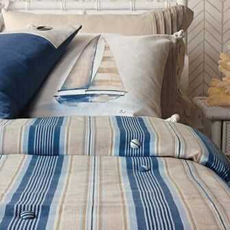 Eastern Accents' decorative comforters come in two different finishing options: button-tufted or hand-tacked.
