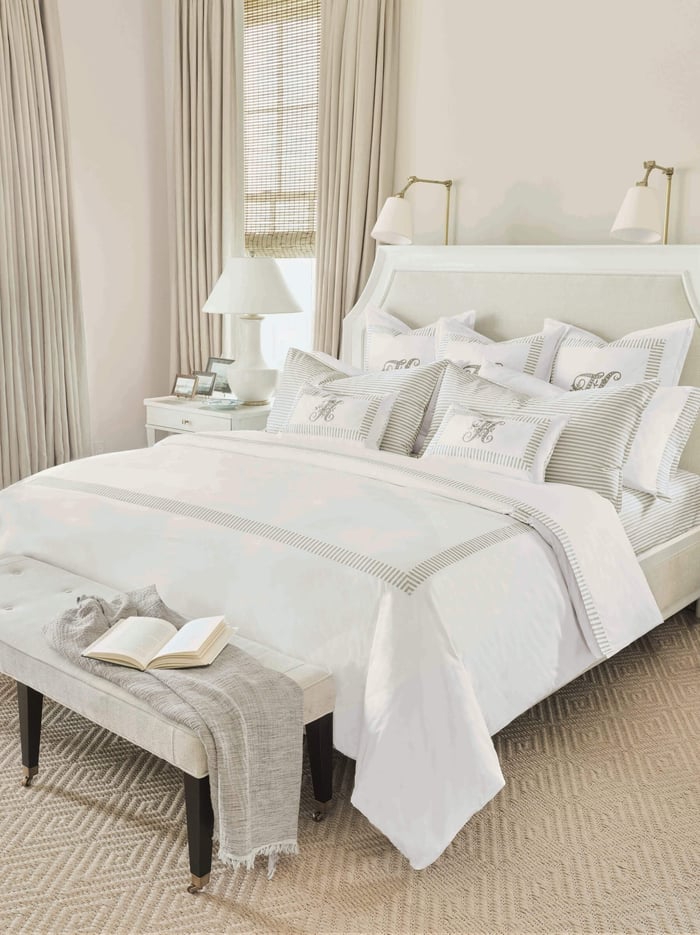 When shopping for bedding, you may find yourself with a difficult decision: Duvet vs. Comforter. Like many Eastern Accents collections, our newest ensemble, Elise, features both a Duvet Cover and Comforter as a decorative top bedding layer. Both pieces come in the same sizes and look extremely similar, so it can be hard to tell the difference. We are here to help simplify things! Essentially, a duvet is made of two parts—a cover and an insert—while a comforter is a single, sewn-together piece. Let’s dive into all the differences between these two high quality bedspreads, and find out which style is right for you.