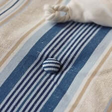 Button-tufted comforters are tufted with fabric buttons on the face and reverse, covering the hand-tacking underneath. The fabric buttons are made with the same fabric as the comforters, so the overall style remains as similar as possible.