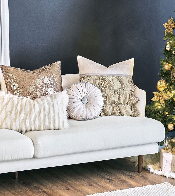 What goes with glam design better than elevated textures? Ribbons, faux furs, or ruffles add an extra pop of festivity, while still keeping your space elegantly refined. Glamorous and eye-catching, these looks make a statement, easily transforming an everyday room with a little seasonal magic.