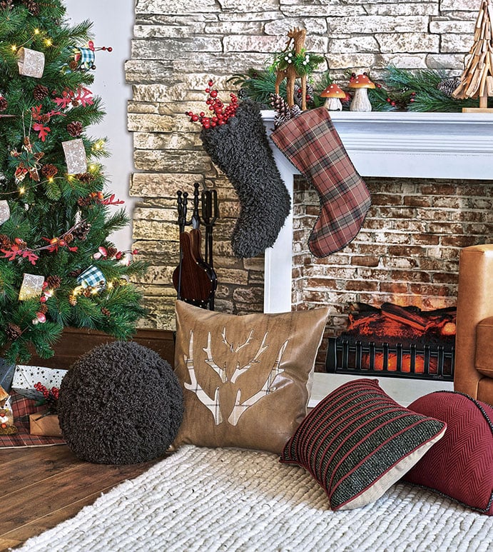 Whether your aesthetic leans more traditional or rustic, a fun accent pillow is a sure way to hone in on seasonal joy. Have some fun with intricately detailed reindeers, wintery pine trees, or season’s greetings. Styled with a neutral bed set or tucked on a living room sofa, these happy accent pillows make any room feel festive. Browse through our Home for the Holidays line for some of our favorite pillows to fit your look.