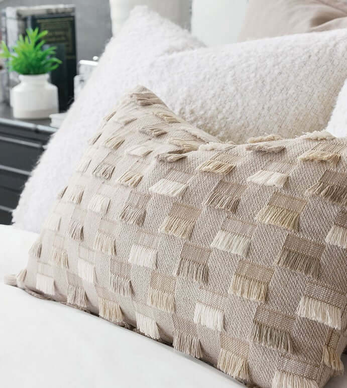 Soft neutrals and refreshing bedscapes also set the perfect canvas for layering. Cloud Dancer’s versatile nature means it pairs well with whatever layers you choose, no matter the season. Bring in a rich neutral throw like Dolce, or mix and match with some of our favorite coverlets, like Viola or Coperta. Ideal for layering, these staples add soft tones and warmth– plus they can be easily taken on and off the bed depending on climate.