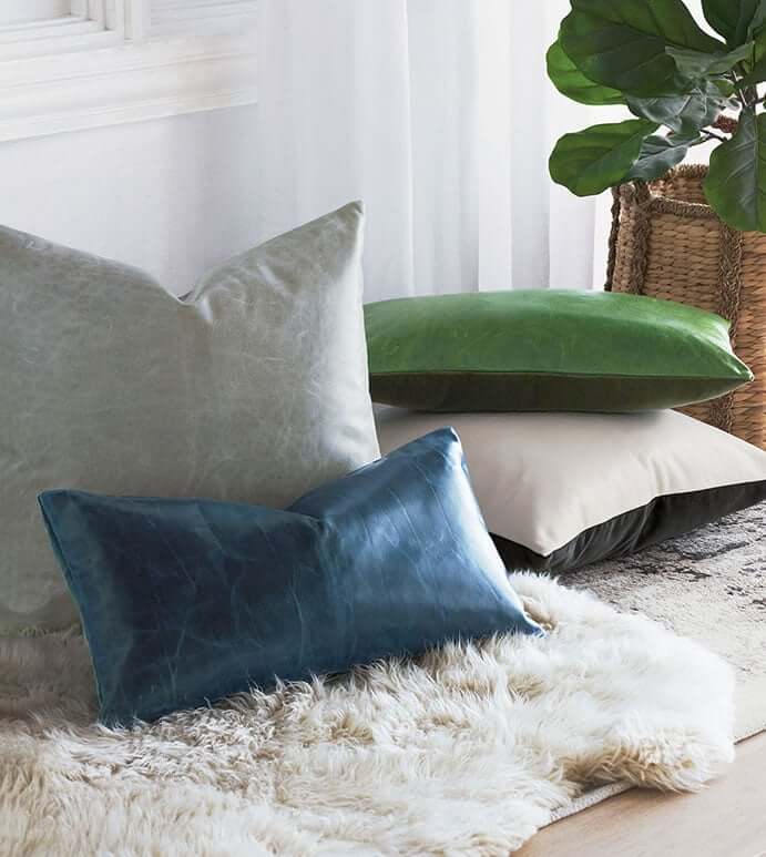 Eastern Accents sources real leather hides for our line of tudor pillows and many more products. Durable and stylish, a natural leather product can last you a lifetime. However, you must consider the care needed for real leather. Even when treated, leather is naturally porous and can stain easily. It is important to dry any liquid spills with a lint-free cloth as soon as possible to avoid leaving a mark. We also recommend keeping leather out of direct sunlight for prolonged periods, as this can dry out the leather and affect the color. For more information about our real leather products, check out this helpful article.