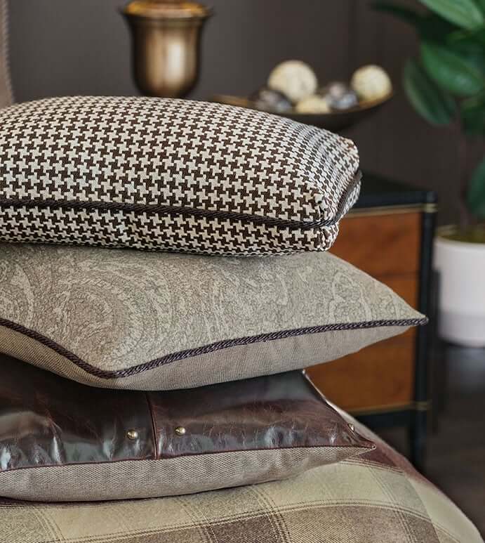 With its Scottish ties and sophisticated charm, it was only fitting that we used this lovable pattern in Highland. Explore a traditional brown and neutral houndstooth in Highland's euro shams and decorative pillows.