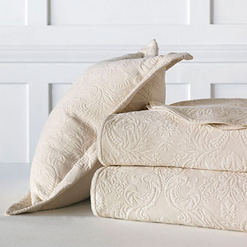 Superbly soft, beautifully styled, and available in four classic colors, this versatile matelasse will complement most aesthetics. Sandrine is woven in Portugal in 100% Egyptian cotton featuring an elegant damask design that creates a sophisticated yet understated focal point. Available in coverlets and bed pillows, Sandrine's comfort and beauty is guaranteed to please.