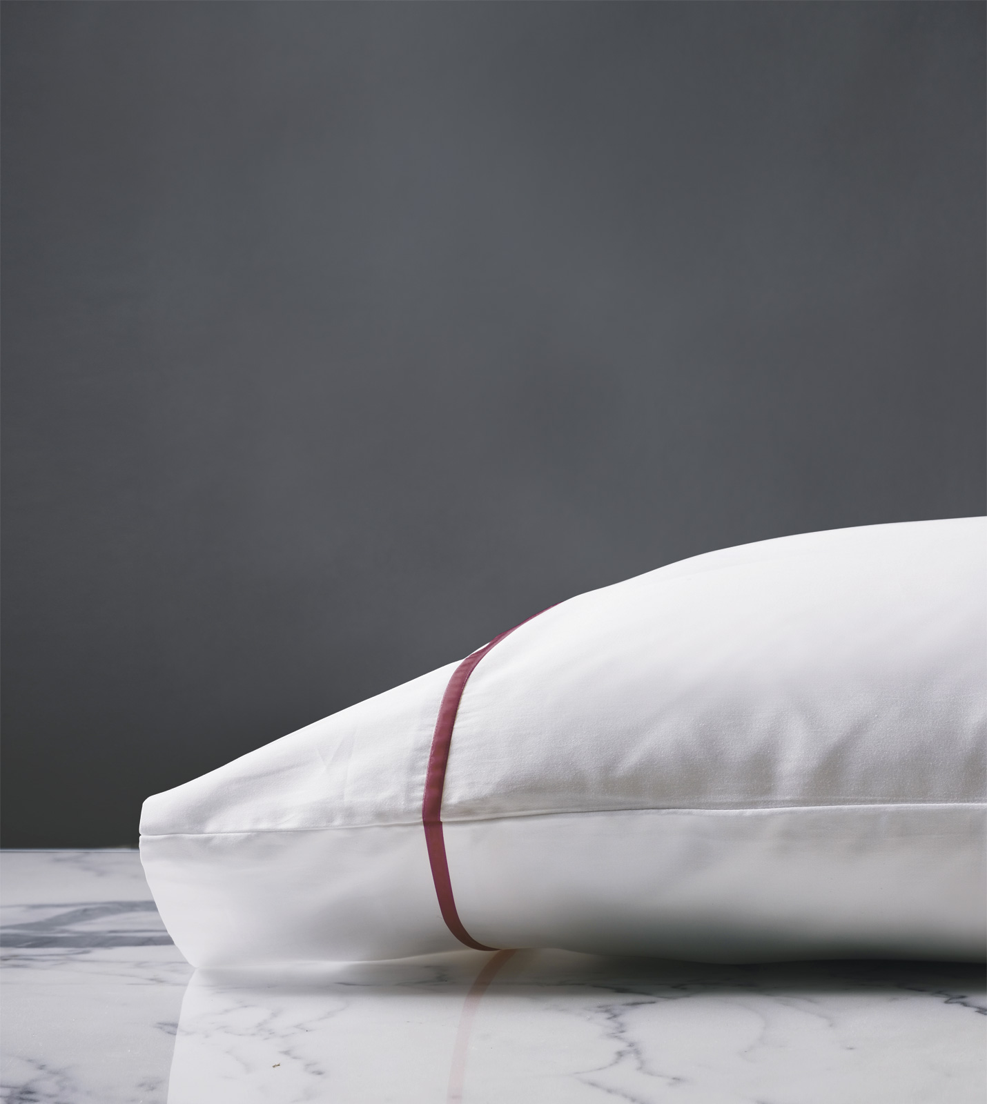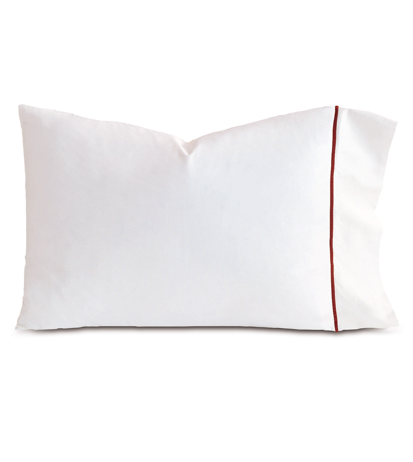 LINEA VELVET RIBBON PILLOWCASE IN WHITE & SHIRAZ