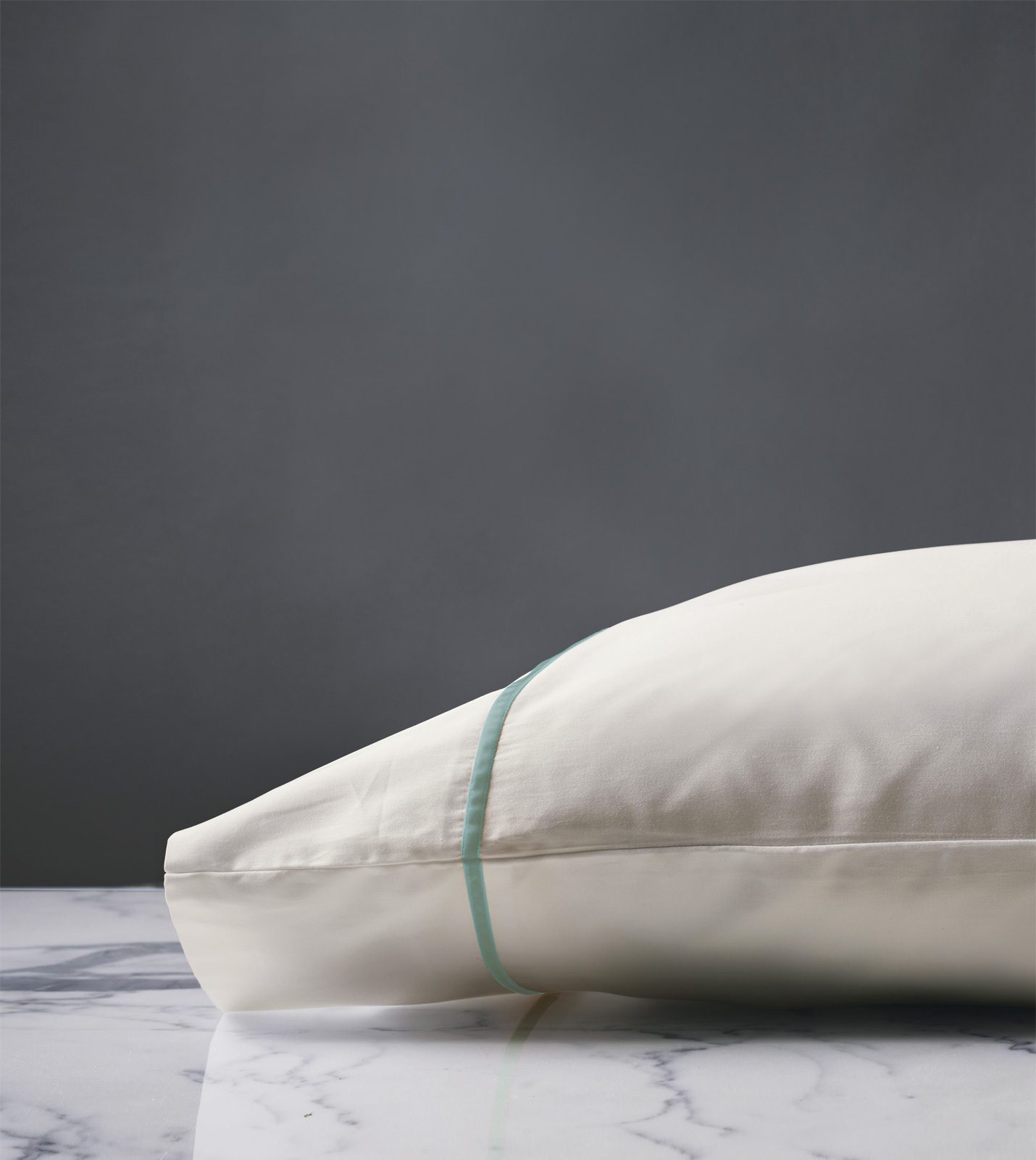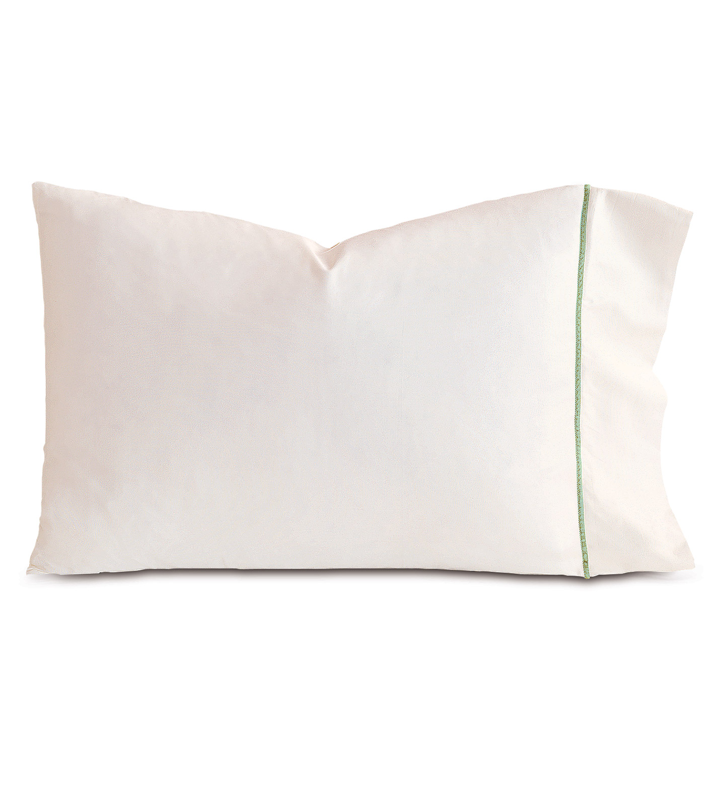LINEA VELVET RIBBON PILLOWCASE IN IVORY & ALOE