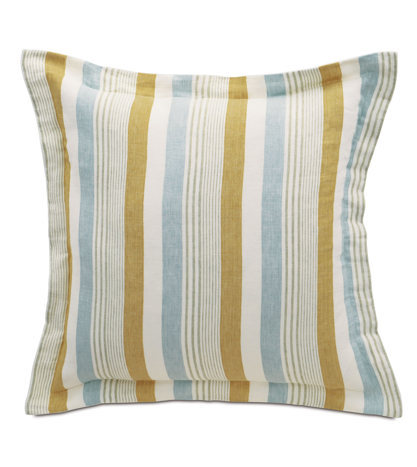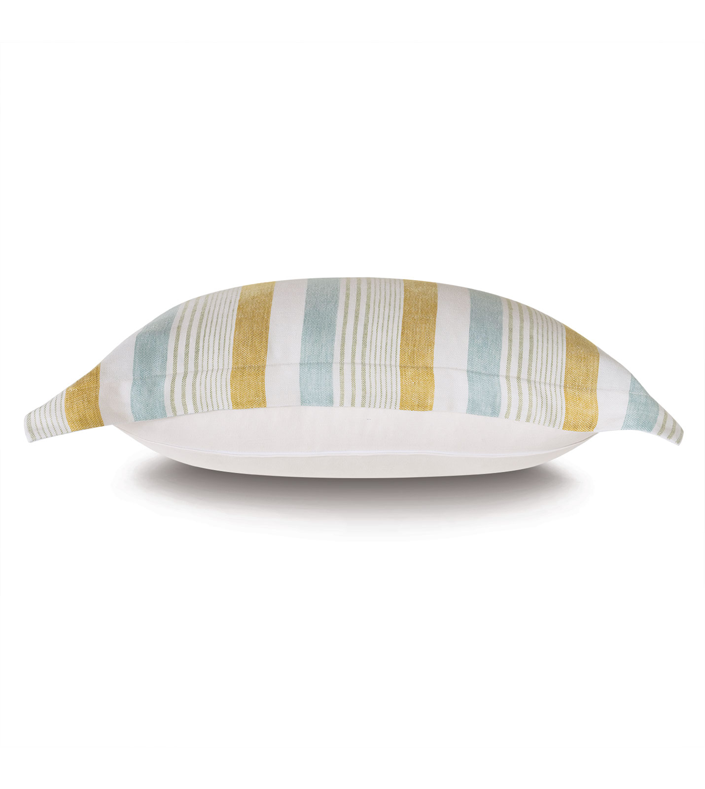- Pastel toned euro sham in a 100% linen striped fabric face