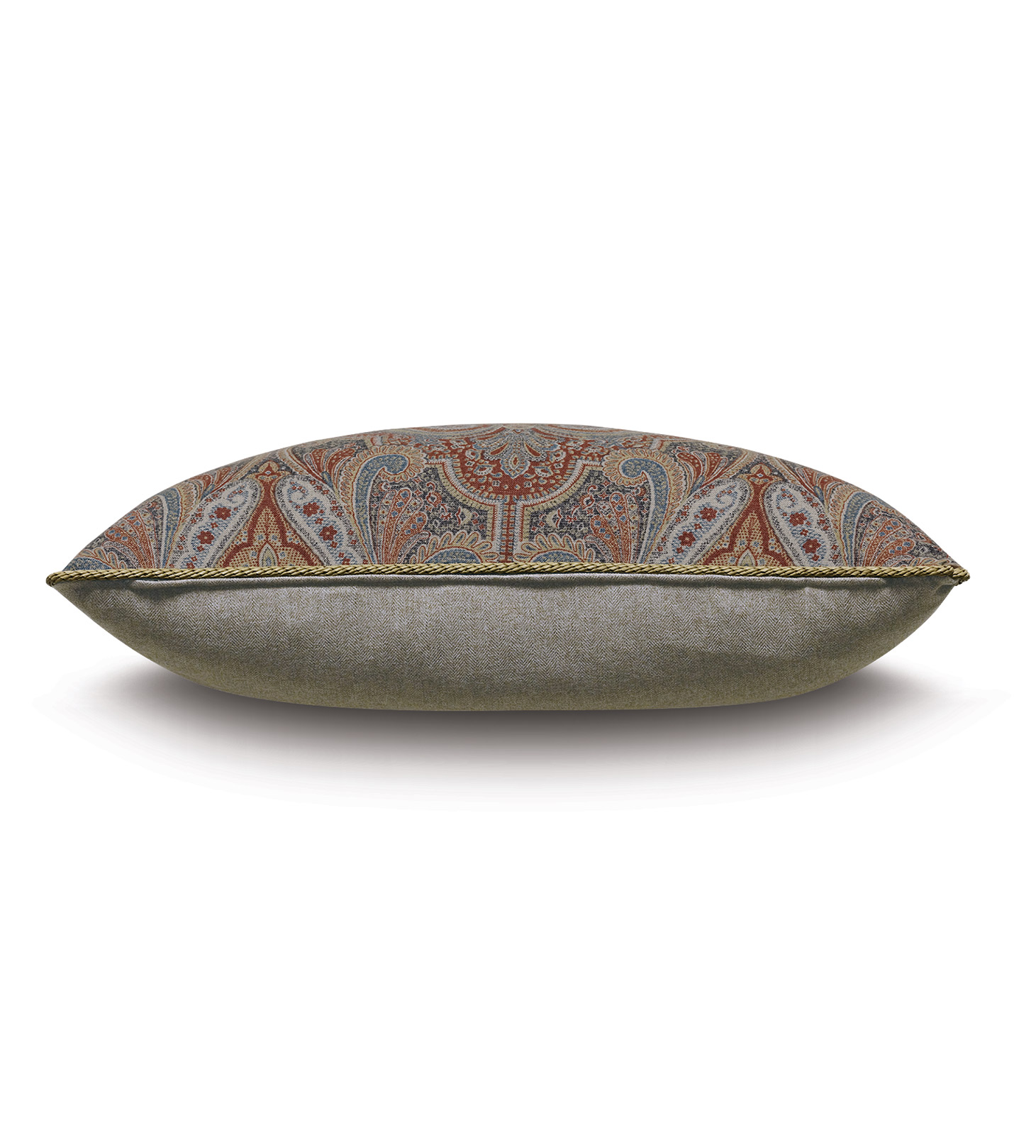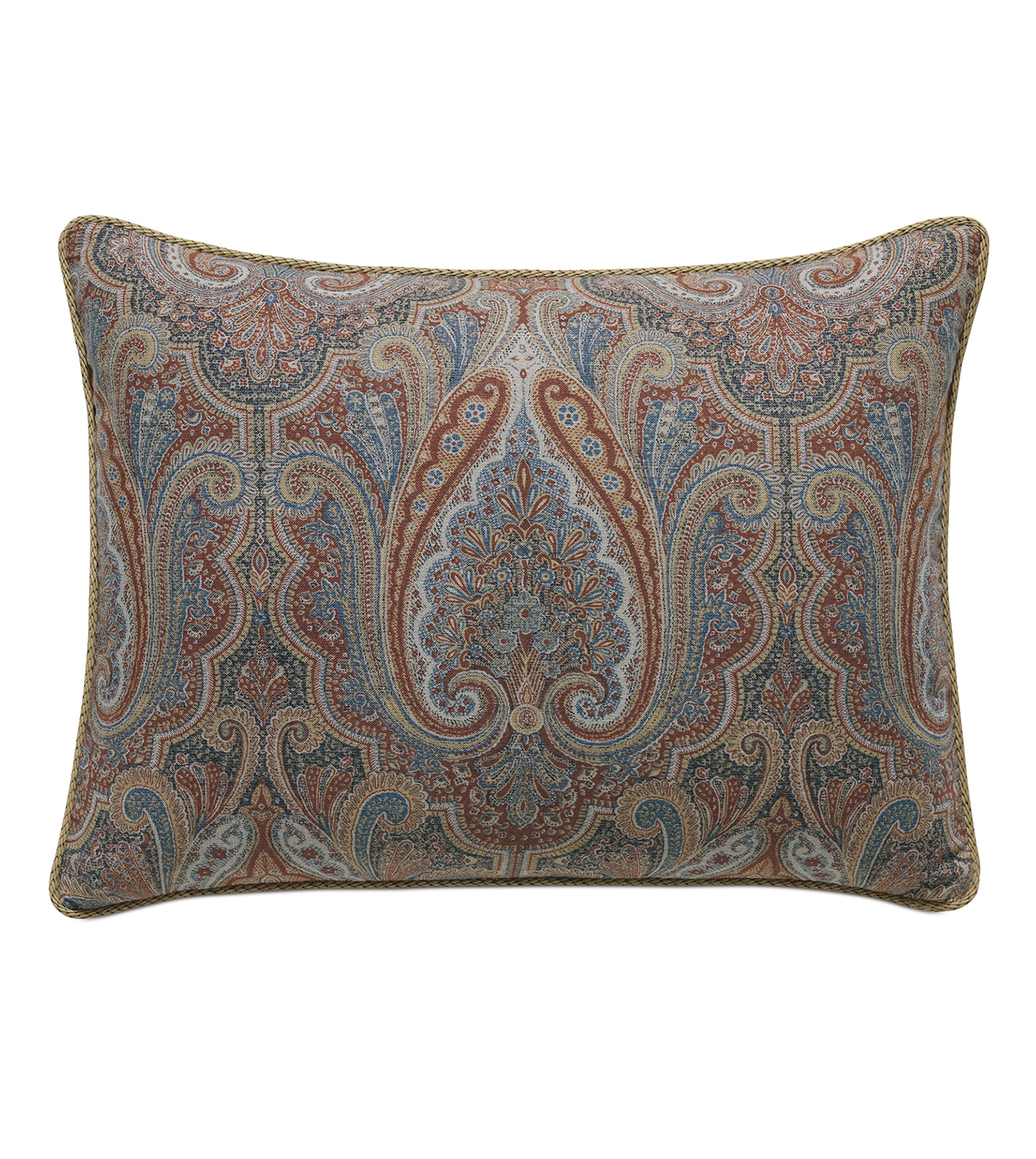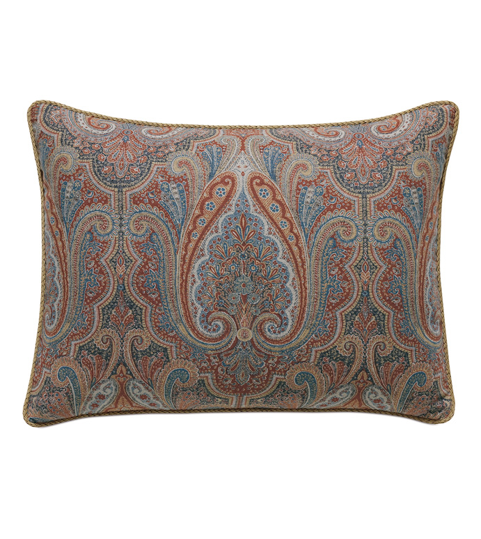 - Multicolored standard sham featuring a paisley design and traditional aesthetic