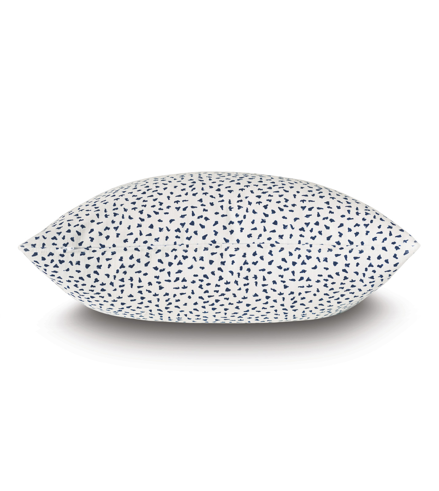 - 100% cotton decorative pillow featuring a blue and white speckled design