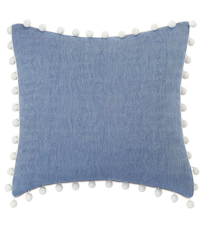 - Blue euro sham pillow in a woven, abstract striped fabric