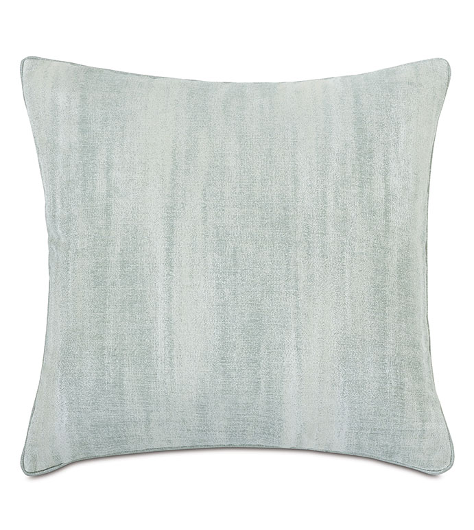 - Square decorative pillow featuring a spa-toned ombre fabric on face
