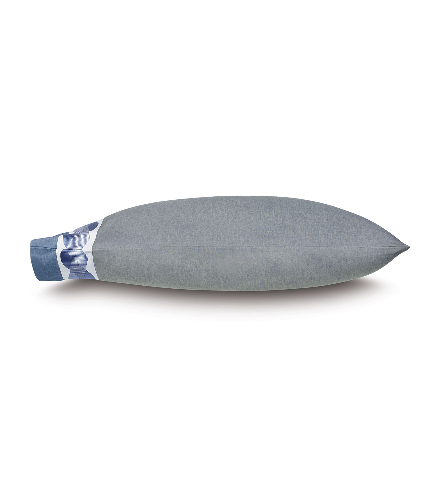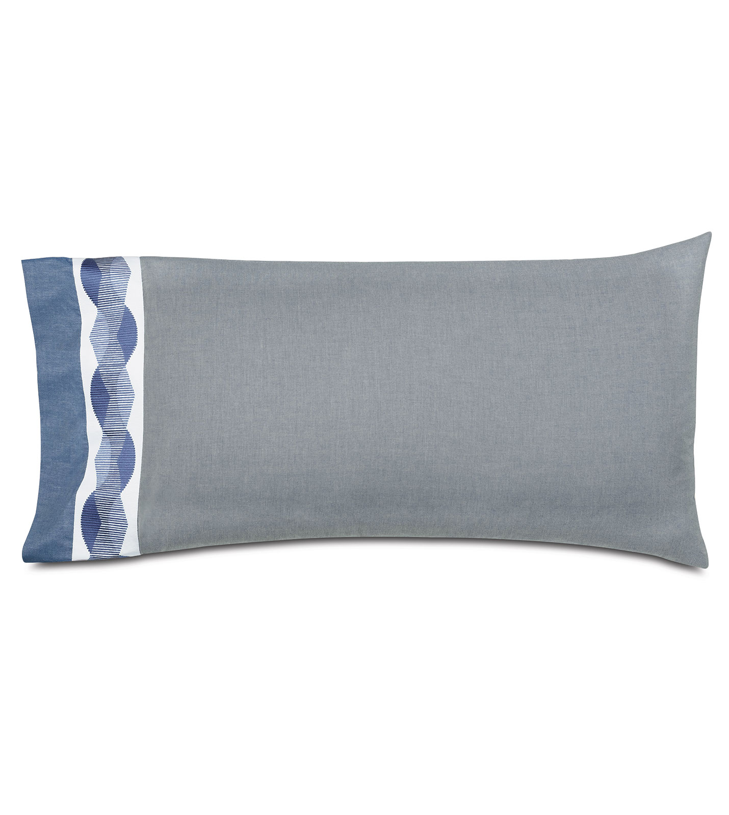 - 100% cotton denim fabric face with embroidered border on left side of king sham