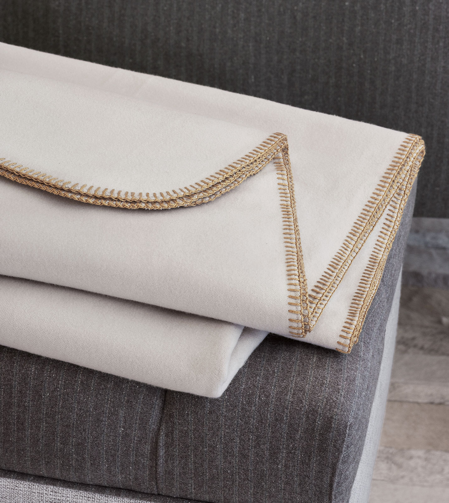 - Flannel coverlet in Carrara Fog