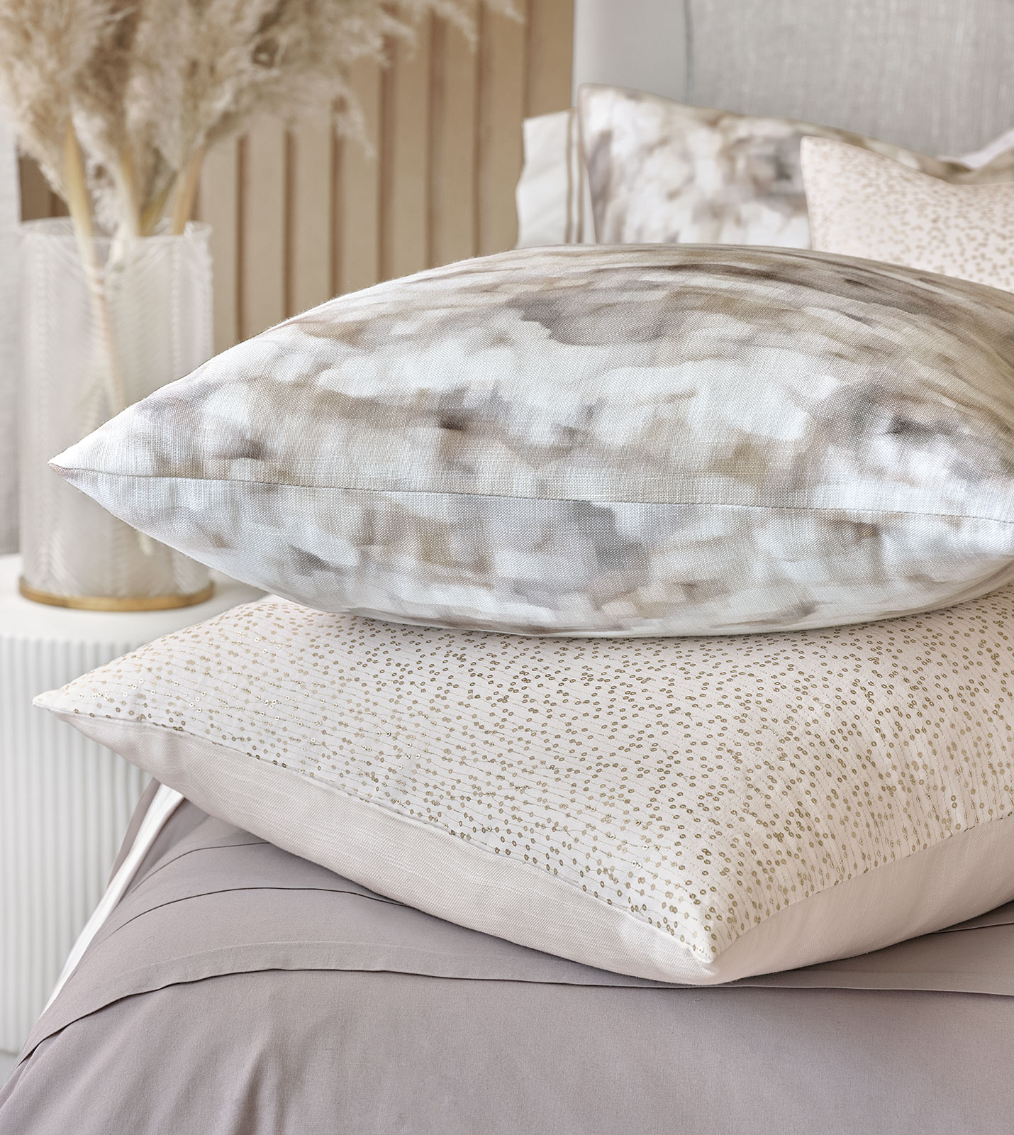 - Decorative pillow with watercolor-effect fabric