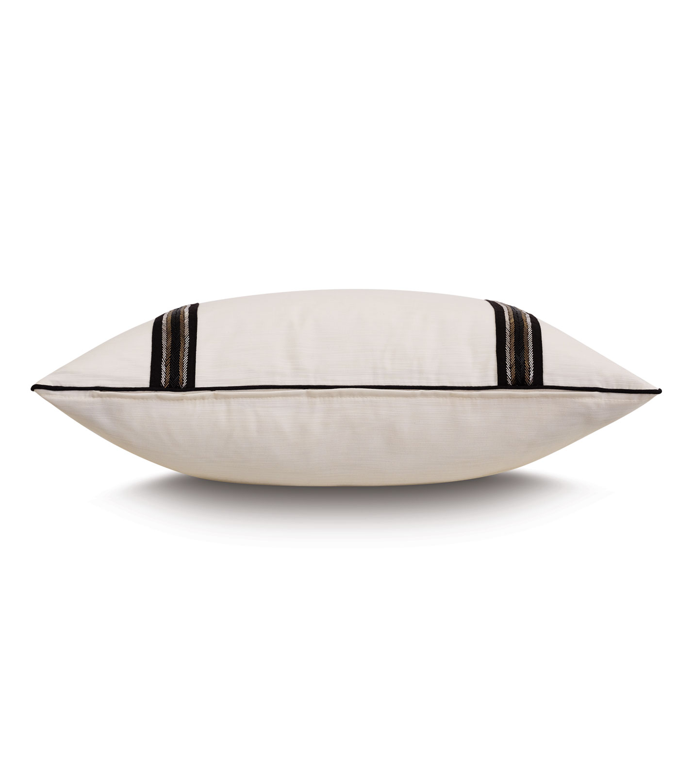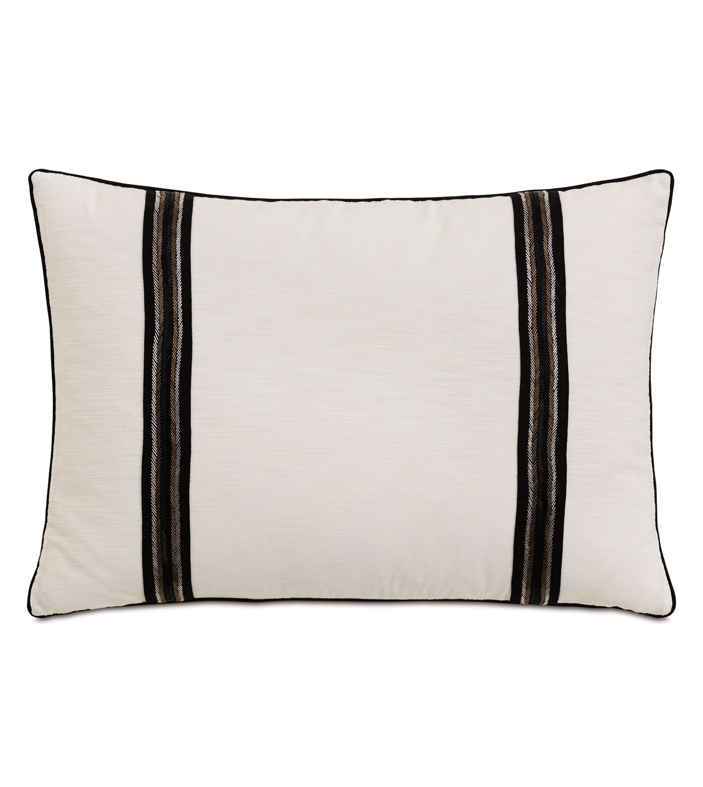 - Ivory decorative pillow with two black and metallic beaded chevron border details