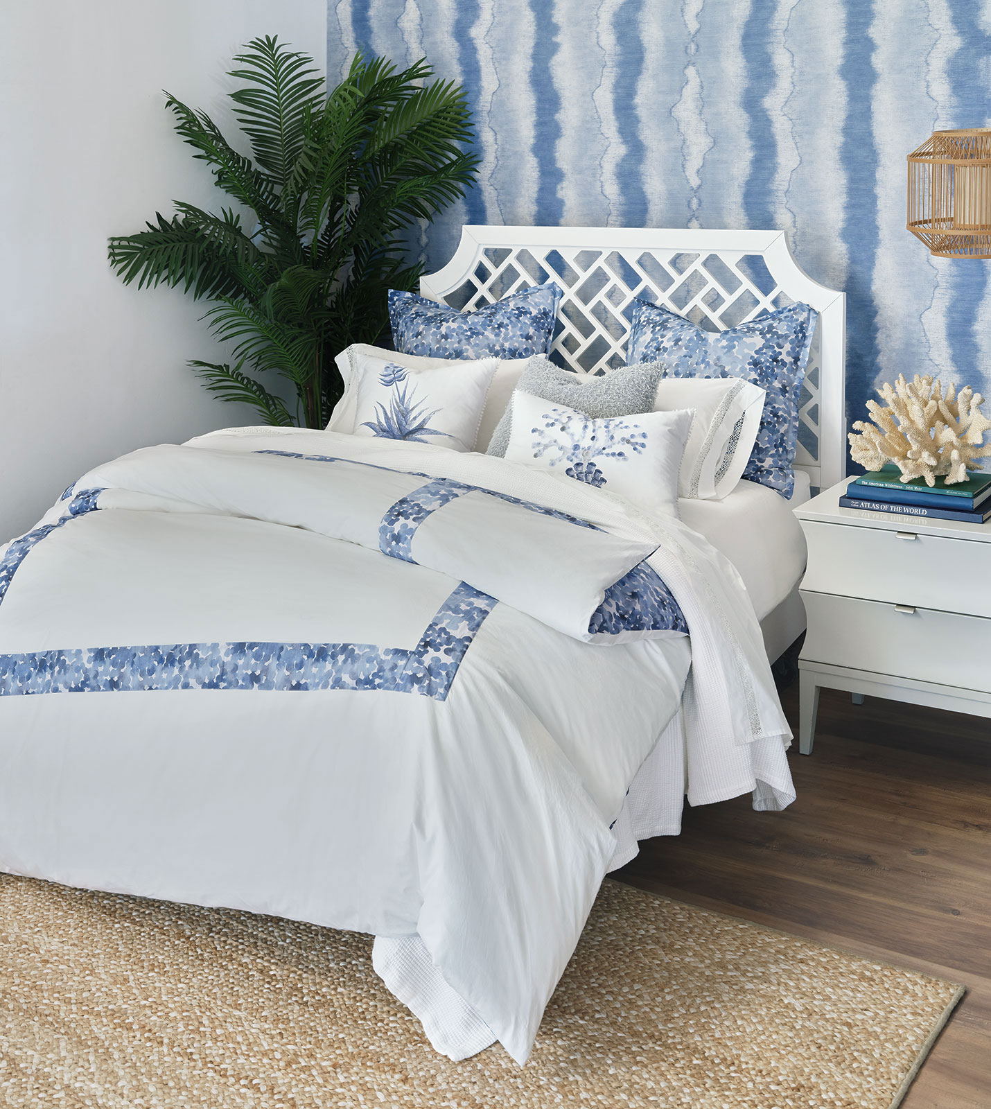 Escape on an ocean breeze with our Safira Reversible Duvet Cover/Comforter. Featuring a dappled azure print in crisp cotton percale, this versatile design can be styled with a subtle border or full spread of painterly pattern. Pair with the rest of our Safira bedding collection, or mix-and-match to create your own refreshing bedscape.