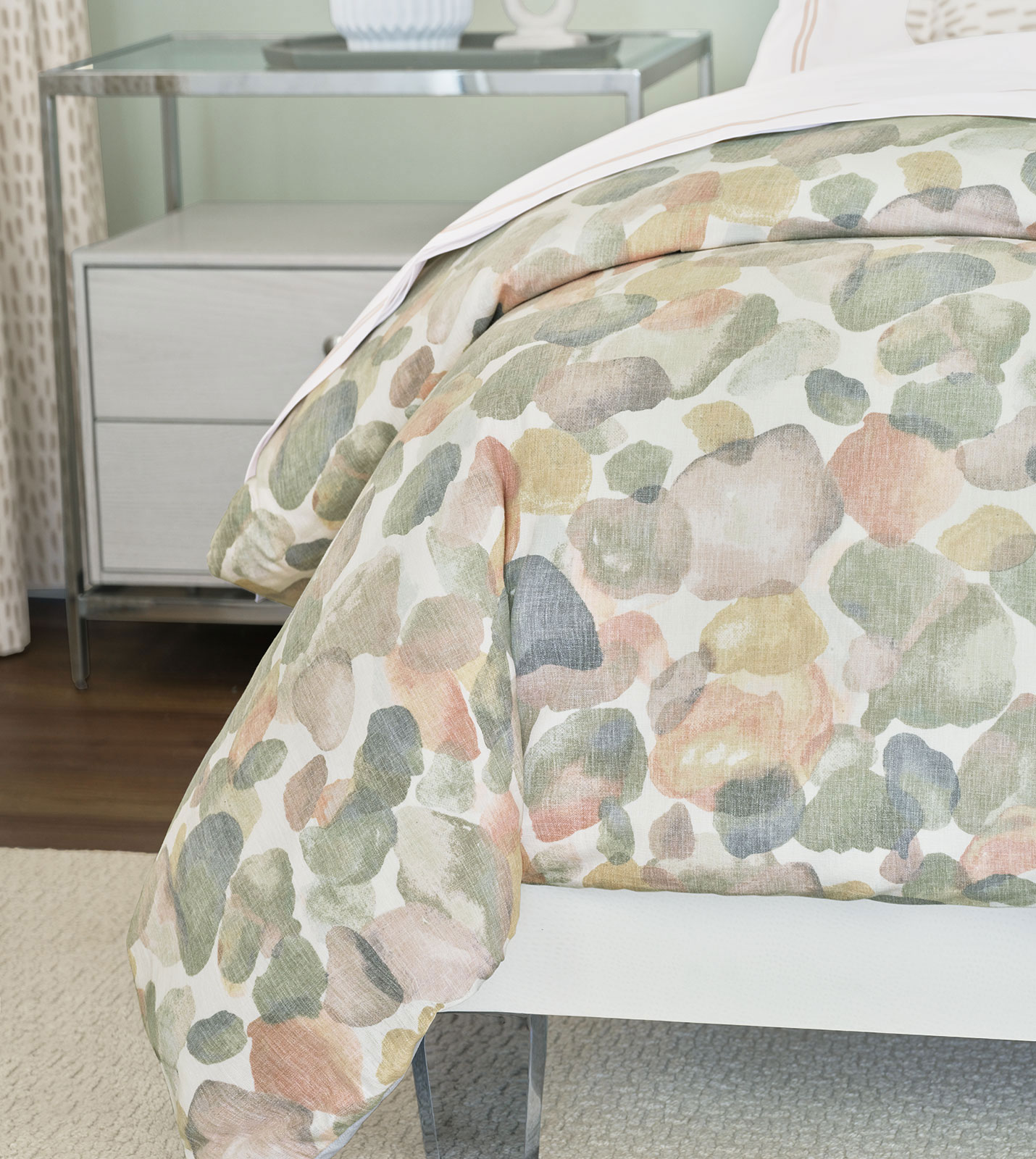 - 100% cotton duvet cover or comforter featuring a printed abstract pattern in neutral and pastel colors