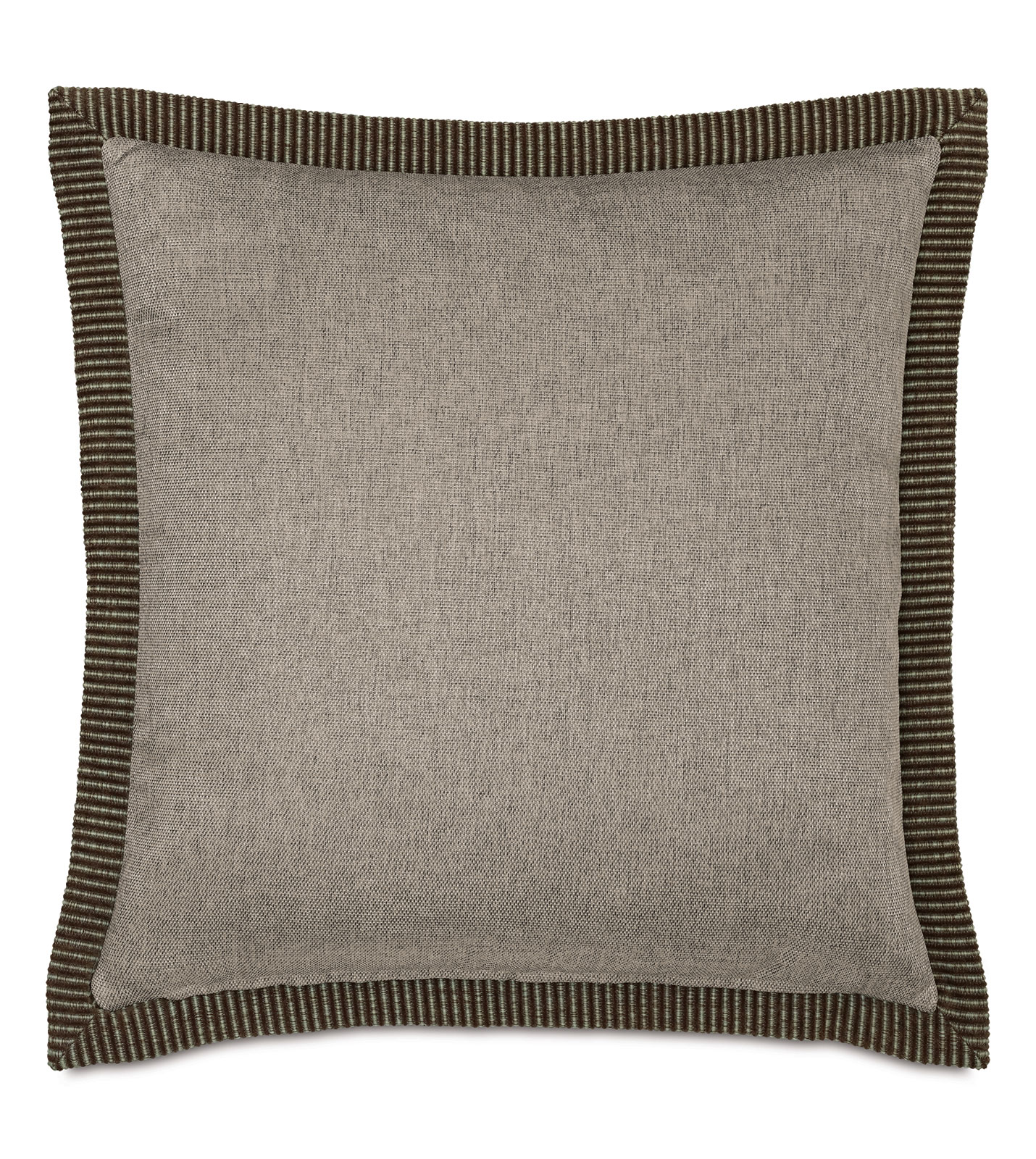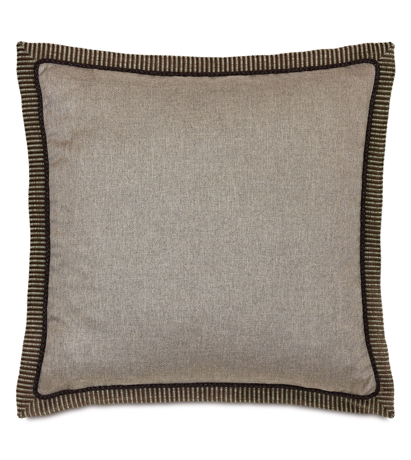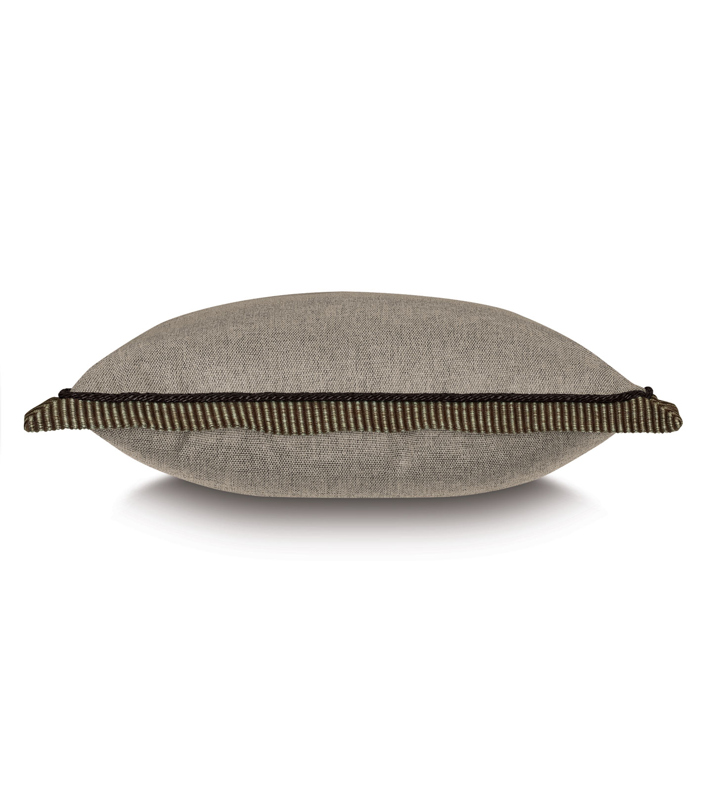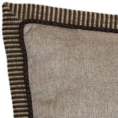 - Solid decorative pillow with a braided faux leather cord sewn on the inner edge