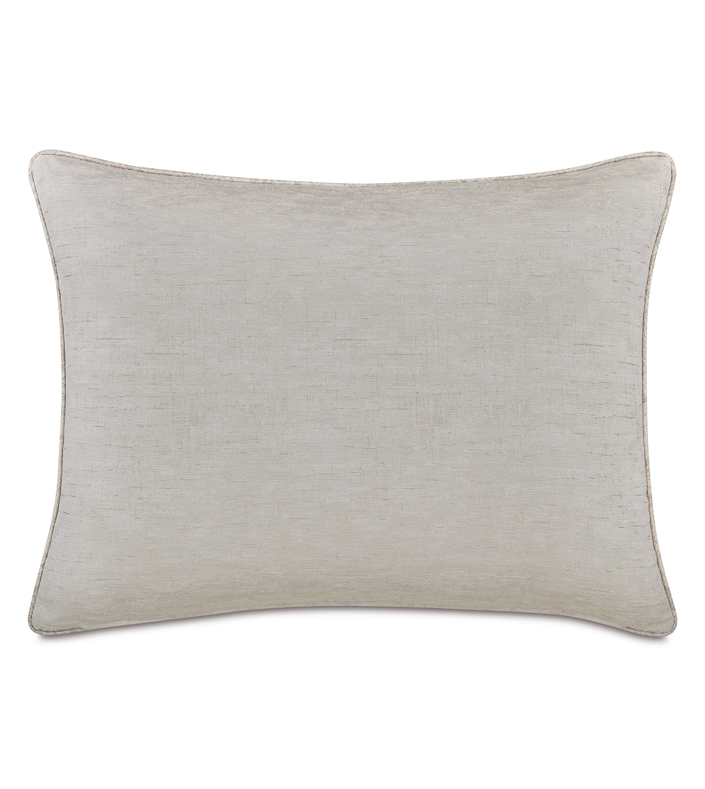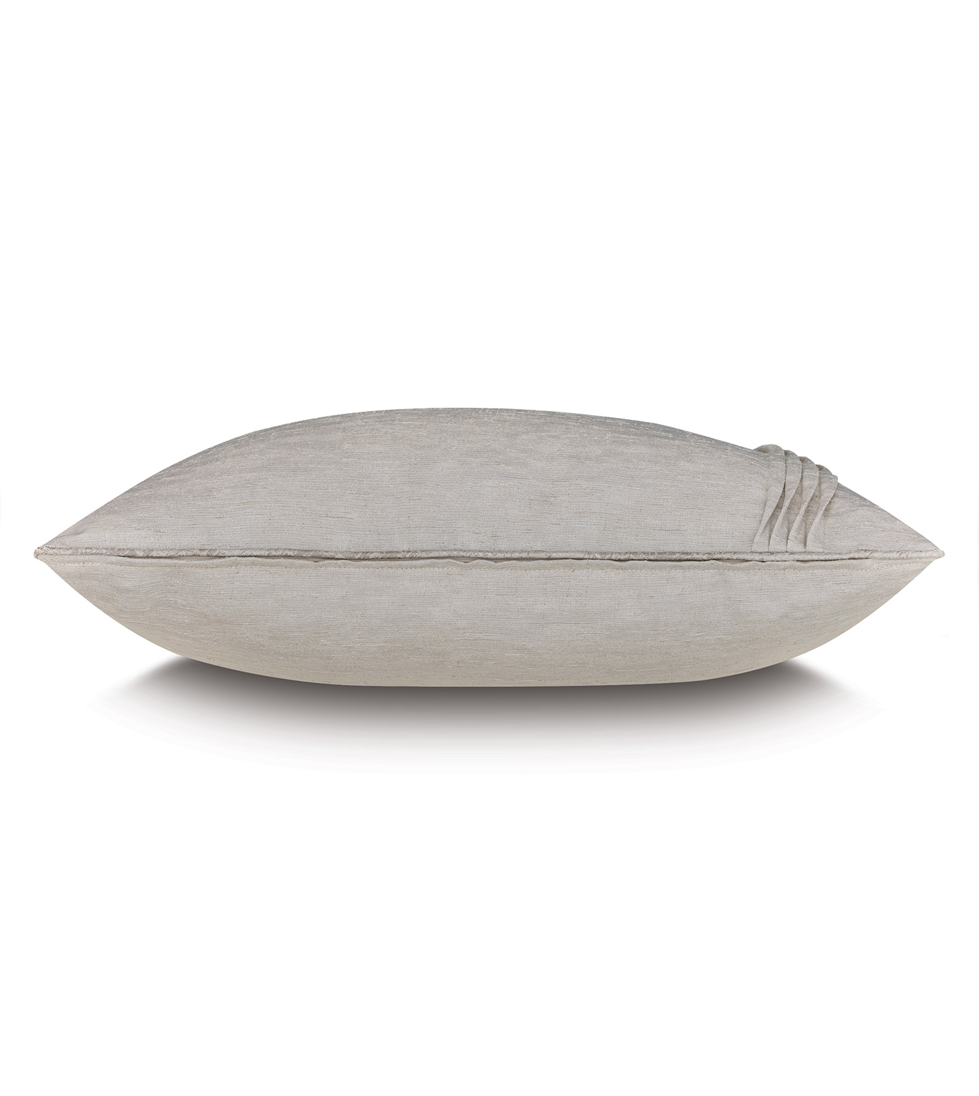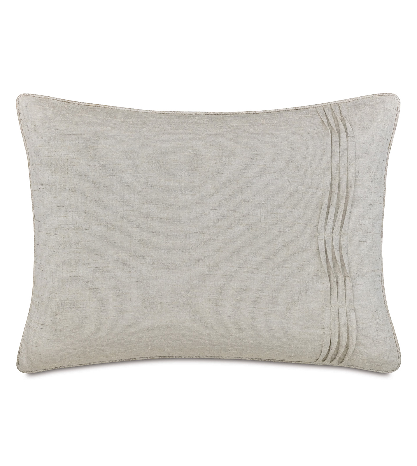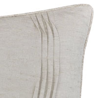 - Standard sham in an ivory sheen fabric with four vertical rows of pleated detail on the right end