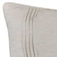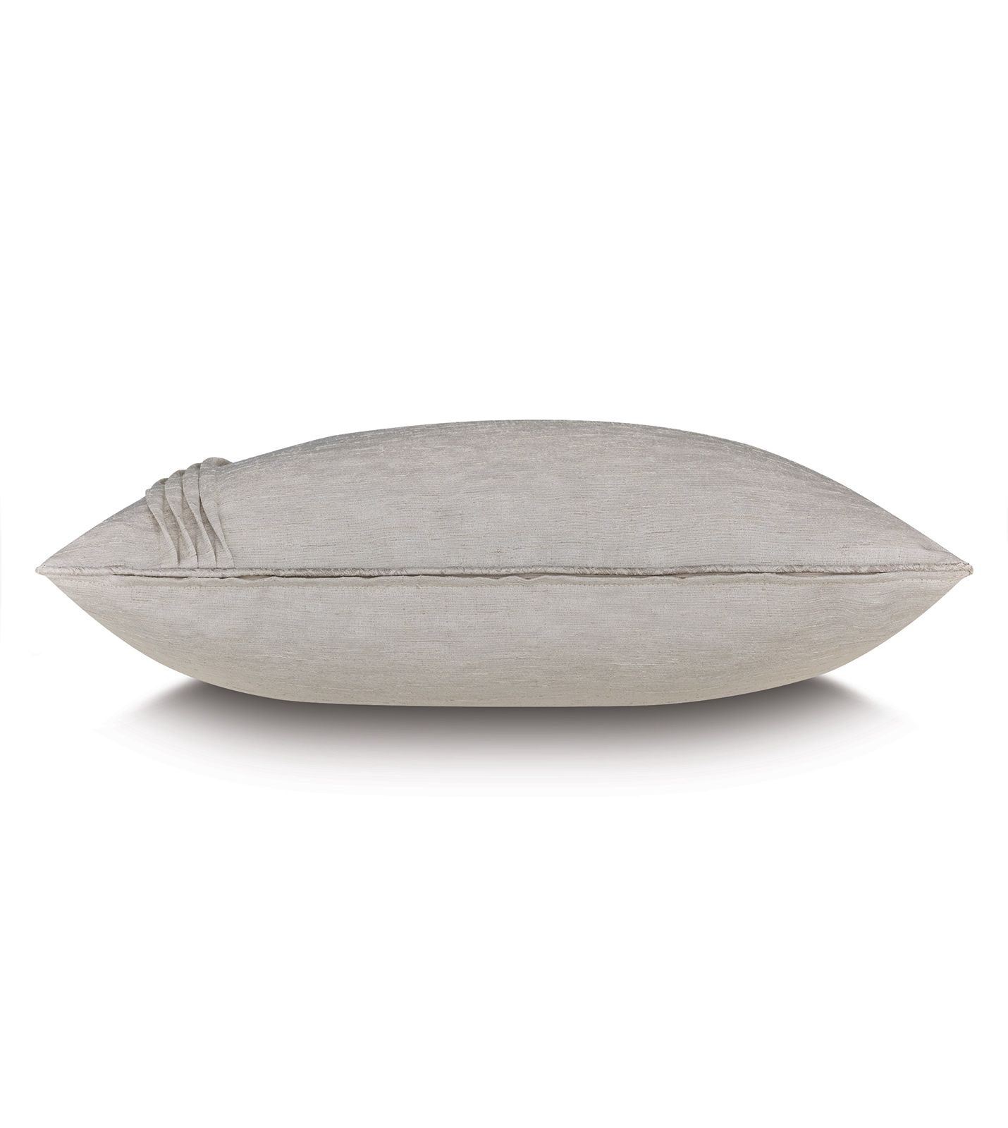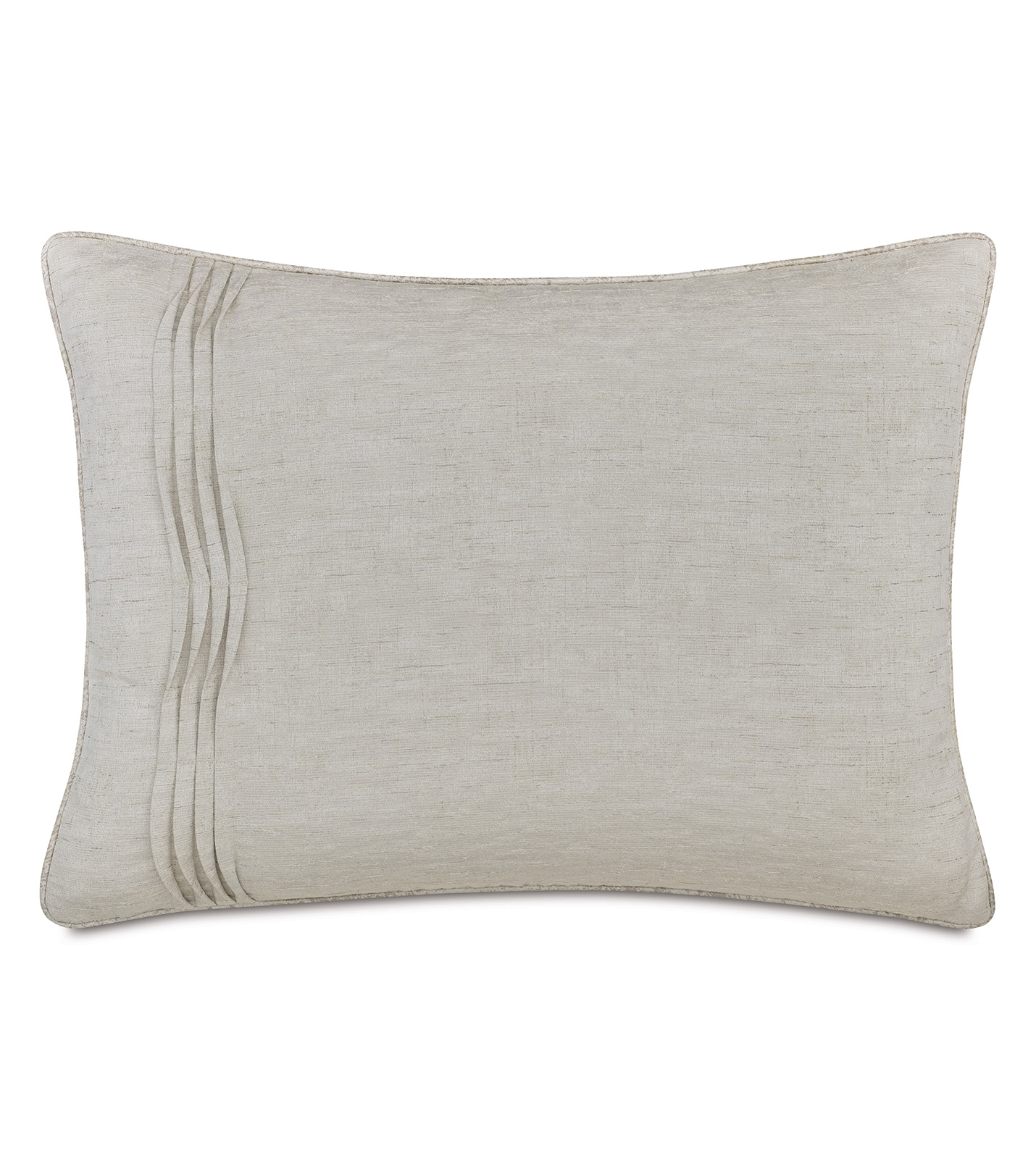 - Standard sham in an ivory sheen fabric with four vertical rows of pleated detail on the left end