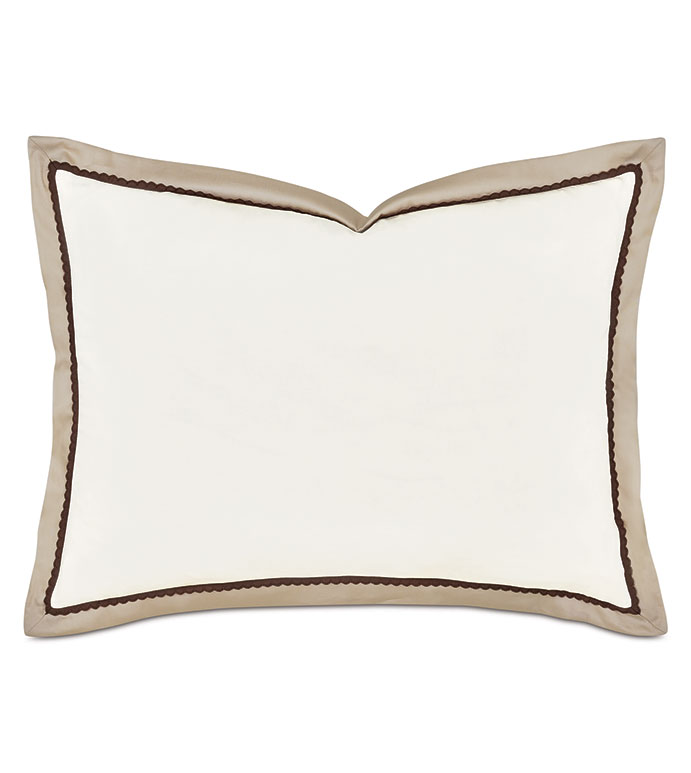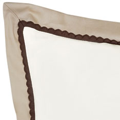 - 100% Egyptian cotton sateen standard sham with a fawn scallop trim on the inner edge