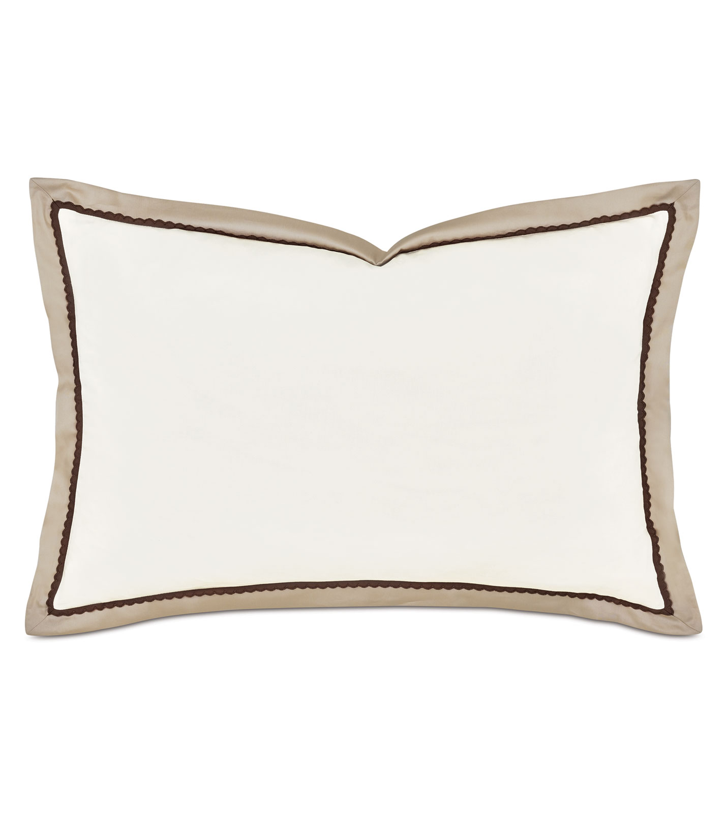 - 100% Egyptian cotton sateen queen sham with a fawn scallop trim on the inner edge