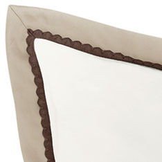 - 100% Egyptian cotton sateen king sham with a fawn scallop trim on the inner edge