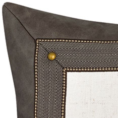 - Solid textured standard sham framed with with a faux leather fabric and mitered border with nailhead detail