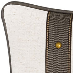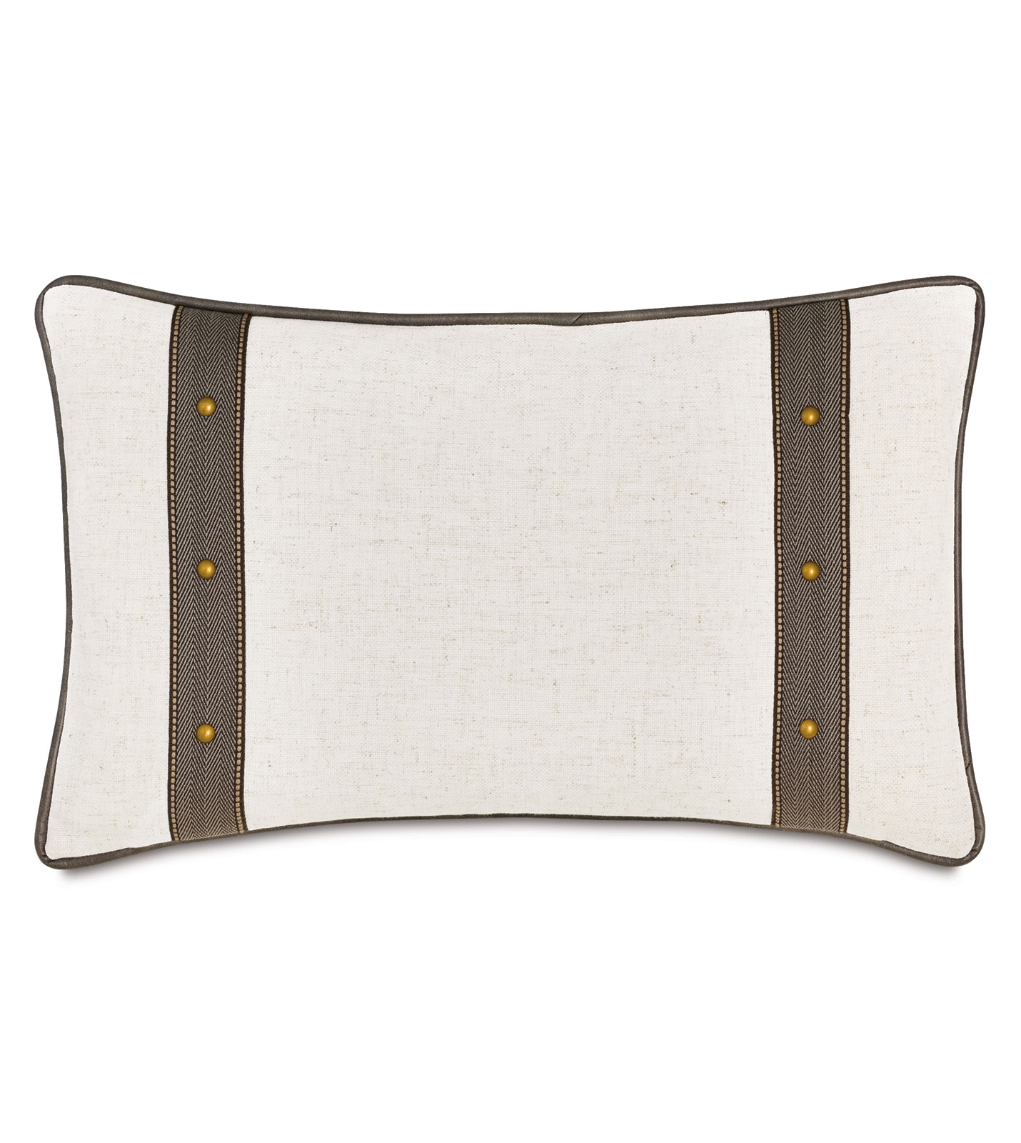 - Decorative pillow in a solid textured fabric featuring 2 bands with nailhead detail on face