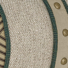 - Decorative neckroll in woven textured fabric featuring small welt and nailhead border detail on face